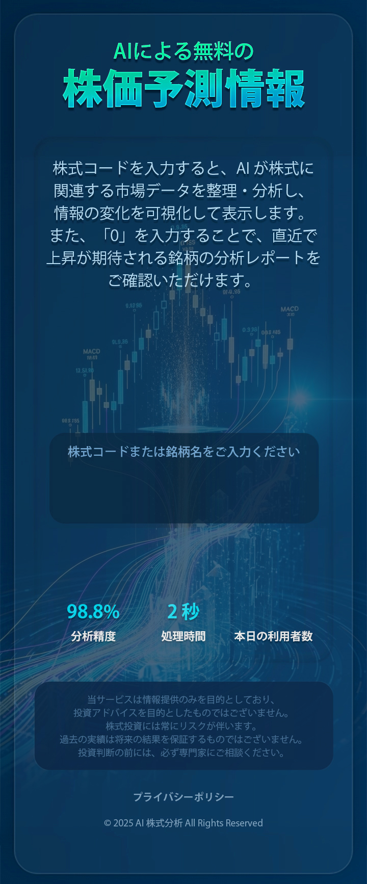 詳細な株式レポ-トを取得するために、AIアシスタントを追加してください。また、今日のおすすめ優良株3銘柄も追加で受け取ることができます。